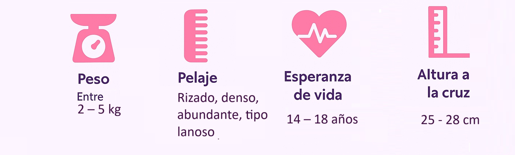 - Tamaño y peso: no superan los 25 cm de altura y pesan entre 2 y 4 kg.